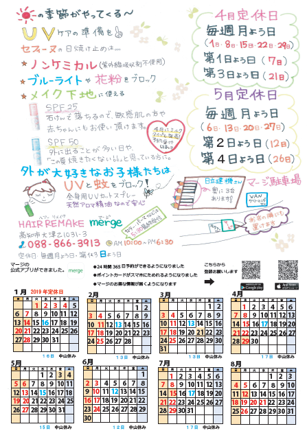 こんにちは、美容室マージの岡林です 春バージョンのマージ新聞更新いたしました。 …