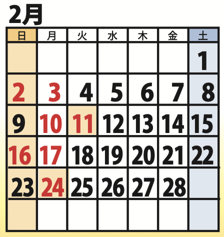 2月、3月の定休日のお知らせ