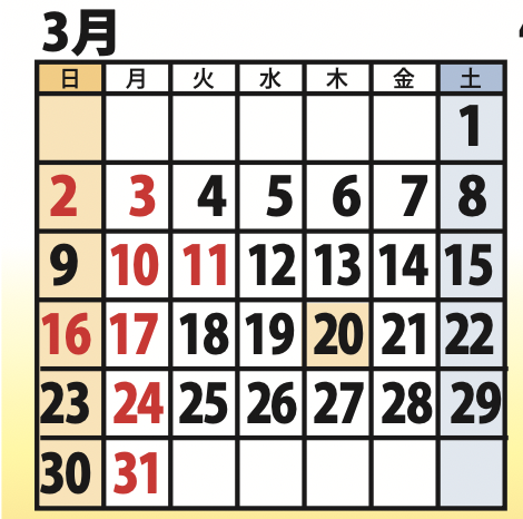 3月、4月の定休日のお知らせ