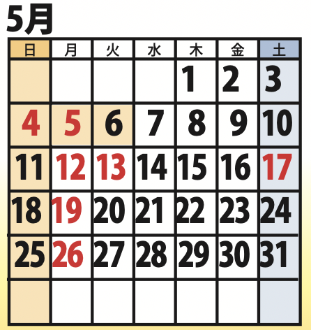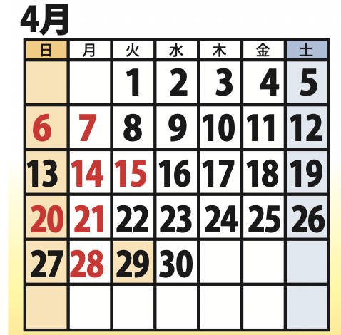 4月、5月の定休日のお知らせ