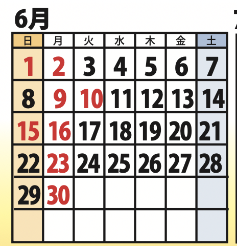 6月、7月の定休日のお知らせ