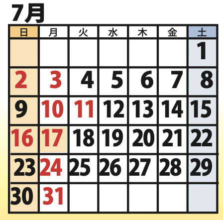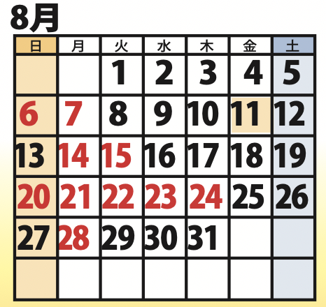 7月、8月の定休日のお知らせ。