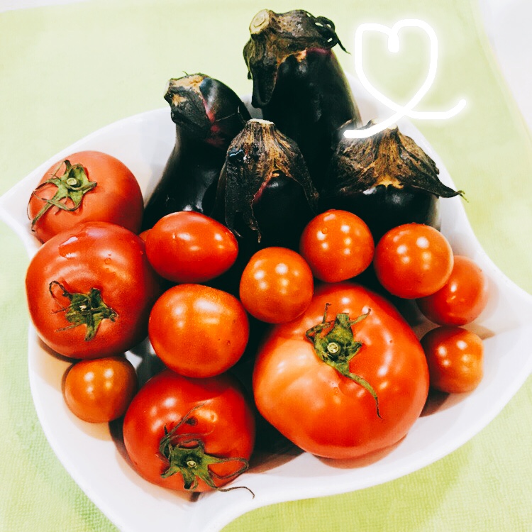 N様、新鮮なお野菜をありがとうございます お庭で作っているナスとトマトを おすそ分け頂きました♪ カット…